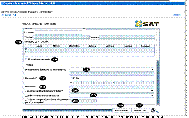 información del negocio como un Espacios de Acceso Público a Internet y lo den